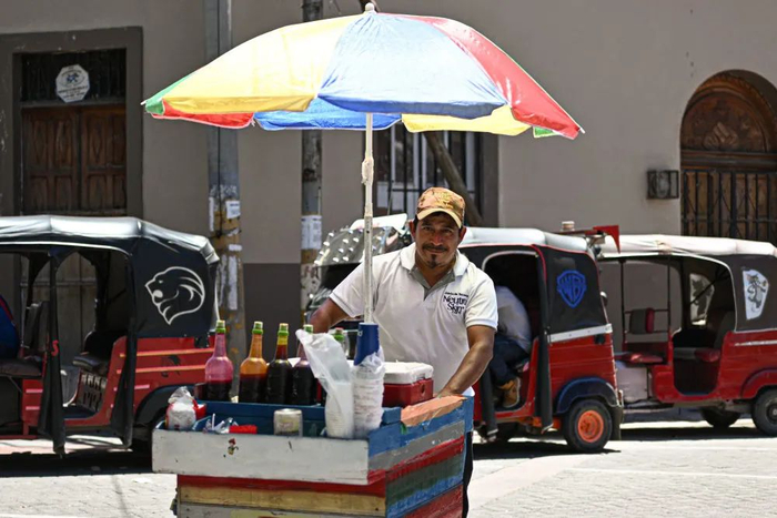 3月26日,一名男子在洪都拉斯首都特古西加尔巴的一处街道上售卖小吃。