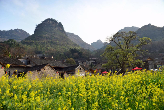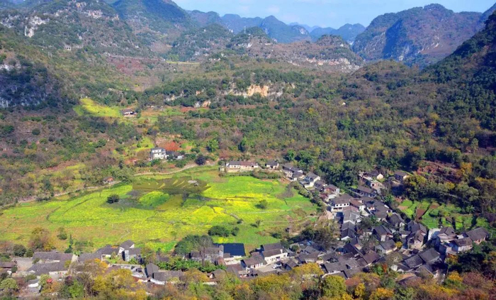 春日,藏在深山坑中的油菜花悄然开放,沿着天坑中心向四周散开来,散发出淡淡的芳香。