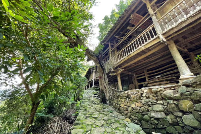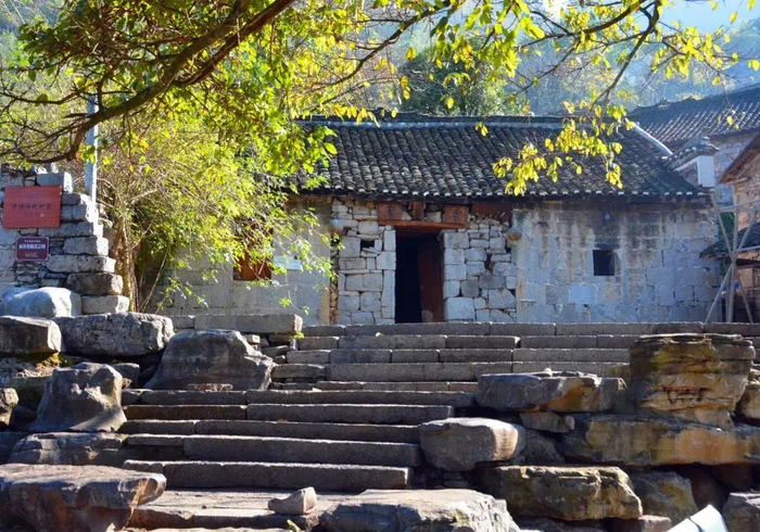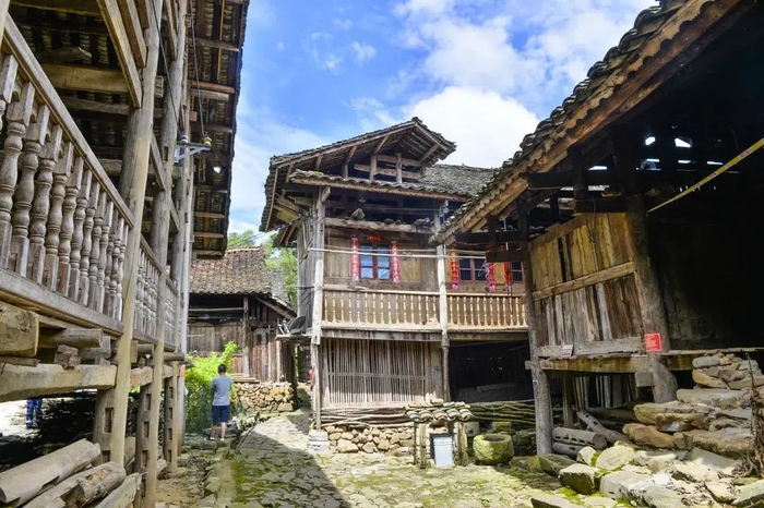寨中的房屋,古朴、典雅,以具有传统村落布局和建筑形制的穿斗木结构小青瓦顶建筑为主,大量百年建筑、参天大树被完好地保存下来。