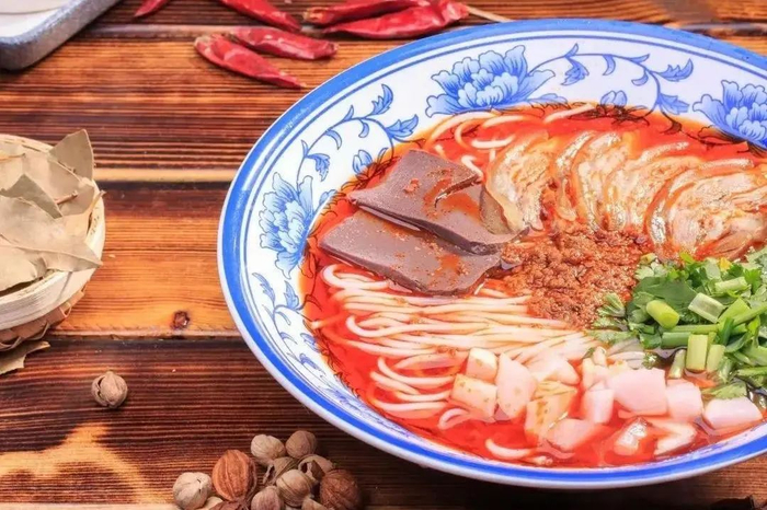 兴义羊肉粉相对其他地区,最特殊的地方在于用的是干辣椒、花椒和秘制酱汁,酱料咸鲜醇厚,回味悠长。