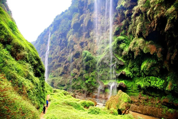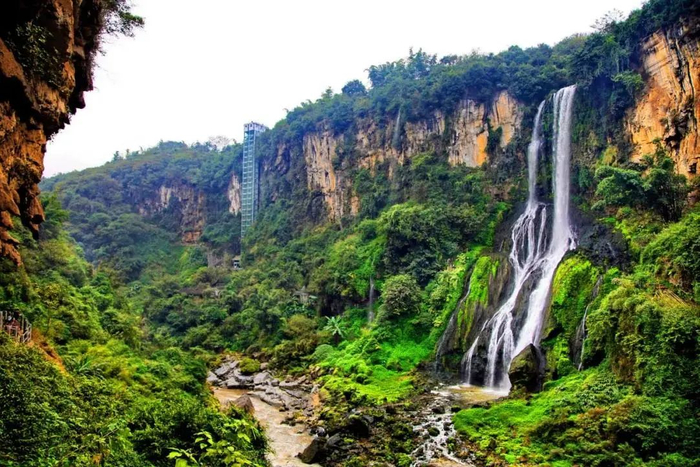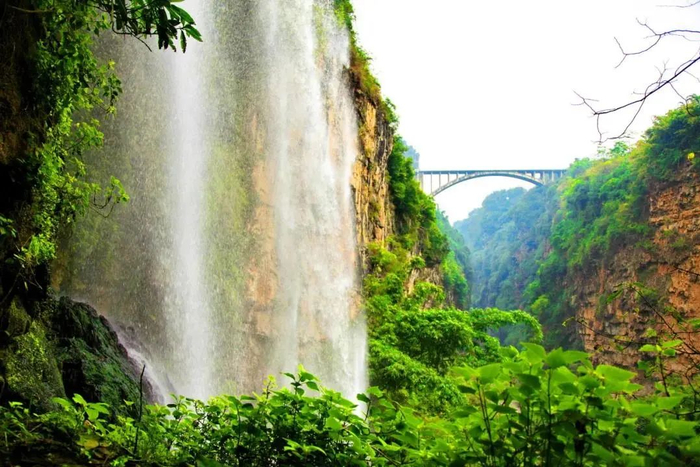 规模宏大的瀑布群和峭崖绝壁上的钙华壁挂,是马岭河峡谷最有特色的景观。
