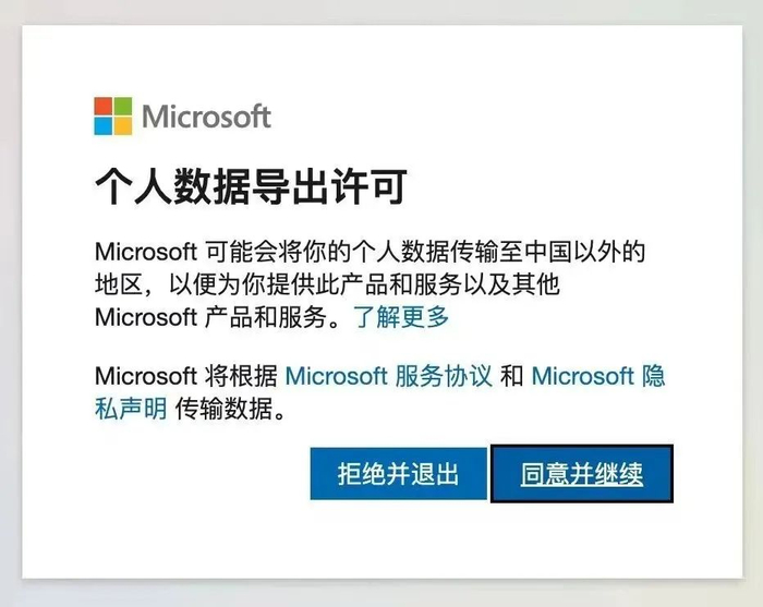 近期,一则消息在网络上不胫而走:中国用户在登录微软Office、Windows、Azure等产品账户时,会出现数据传输提醒:“你的数据将在你所在国家或地区之外进行处理。”