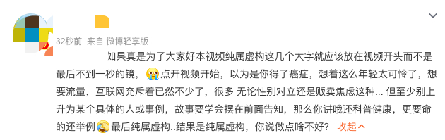 并解释自己拍摄虚构肝癌患者内容是