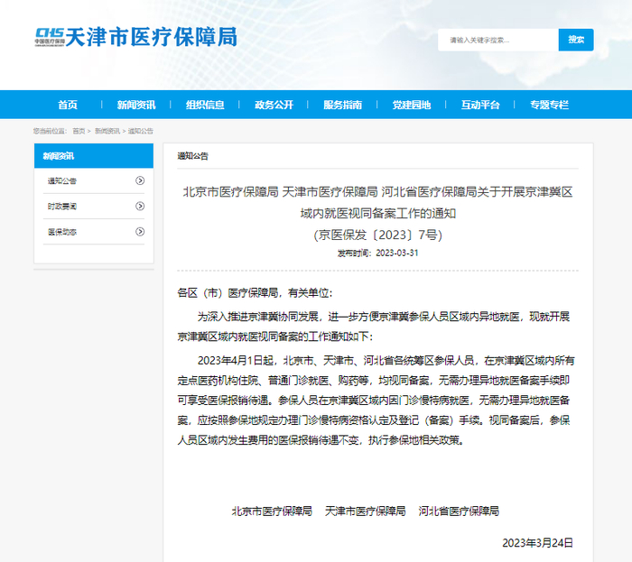 4月1日起,京津冀三地全面取消异地就医备案。