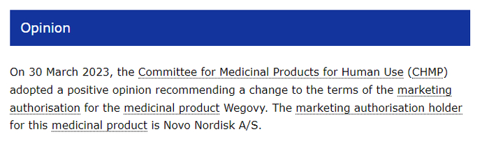 财联社4月1日讯(编辑 赵昊)当地时间周五(3月31日),欧洲药品管理局(EMA)发布公告表示,其人用医药产品委员会(CHMP)采纳了一项针对“Wegovy”的积极意见。