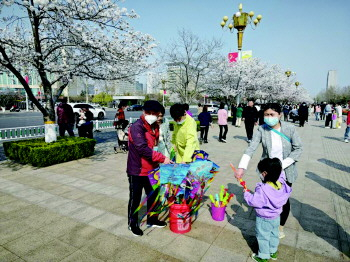如果有人问,潍坊眼下那个地方最火?人民广场毫无疑问排名第一。近日,潍坊市人民广场樱花绽放,近一周以来每天数以万计的市民前来拍照打卡。记者注意到,樱花季也带来商机,不少商贩也来蹭樱花热度,在人民广场周边销售零食、风筝、气球等物品。连日来,记者采访了解到,由于人流量巨大,有些商贩最高时能日入五六千元,就算卖气球也能日入千元左右。