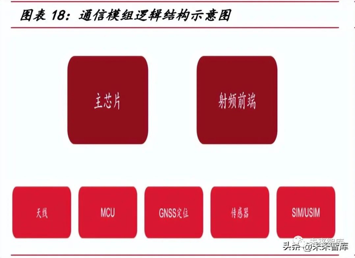通信模组结构以主芯片和射频为主,可以实现最为基础的数据传输功能。通信模 组设备中还可以整合天线、控制器(MCU)、传感器、GNSS 定位芯片、SIM/USIM 等单元,满足用户多元化的需求,实现通信模组在细分领域的应用。以移远通信车规 级模组为例,其整合了 5G 模块,支持 5G 独立组网(SA)和非独立组网(NSA)模 式。其向后兼容 2/3/4G 网络,在没有 5G 信号的地区也可以实现稳定的网络连接。该模组还具备多输入多输出(MIMO)技术,能够改善通信质量。同时,该模组也支 持 GNSS 卫星定位功能,可以接收GPS/GLONASS/BeiDou/Galileo 等多种卫星信 号,定位精度和连续性得到了更为充分的保障。