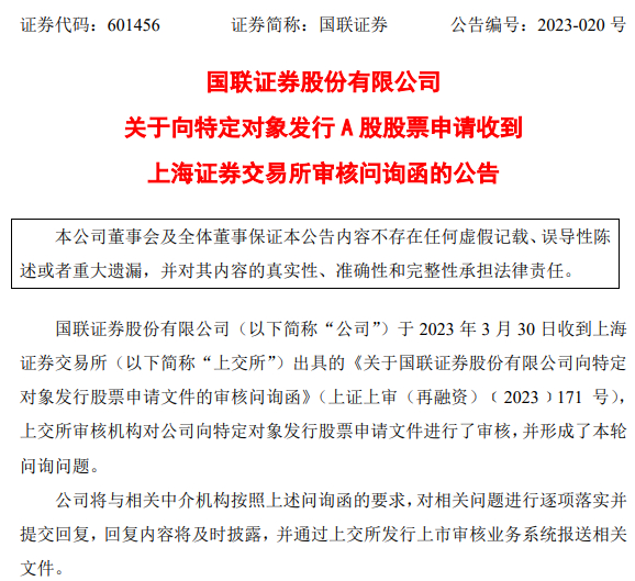 70亿定增遭问询!国联证券三个方面被重点关注,有何影响?