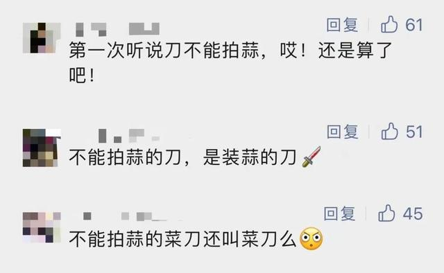 张小泉方对此回应称,一般而言,张小泉的常规刀具是可以拍蒜的。公司也友善地提醒消费者,并不是所有的刀具都适合用来拍蒜,一些硬度较高或者有专用用途的刀具如果用来拍蒜的话,有断刀的风险。