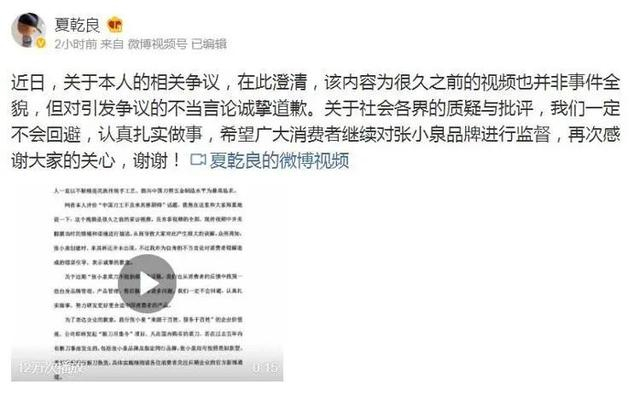 7月18日晚间,夏乾良在微博发布视频回应称,“关于最近的舆论事件,首先在这里向大家诚挚道歉。”