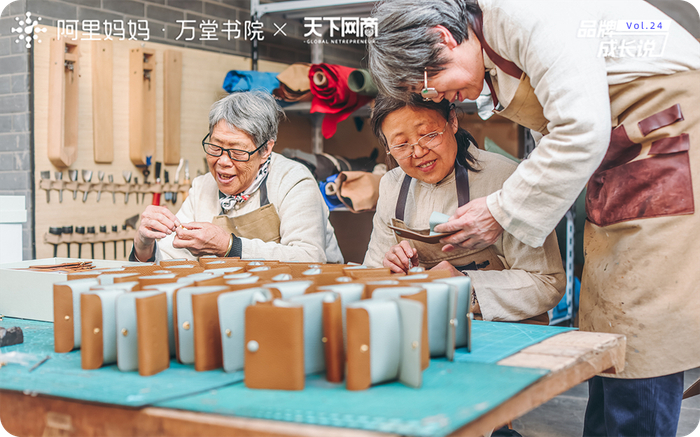 她的母亲是一名皮革工程师,两人一拍即合,做出的第一款包包面世后,引来了付崧身边许多朋友的点赞和求购。订单量不断攀升,母女两人忙不过来,付崧想到山西老家的姥姥辈都是熟练的手工艺人,一支平均年龄65岁的“姥姥团”工坊就此成形。