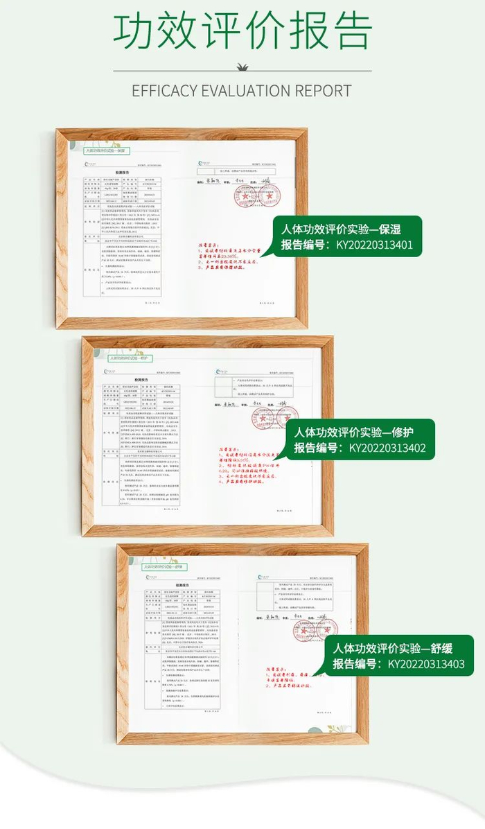 除此之外品牌还完善了多种检测报告,比如人体功效评价试验(包含保湿、舒缓、修护),并且增加了儿童化妆品标志——“小金盾”,有这个标志证明产品配方安全,儿童可安心使用。