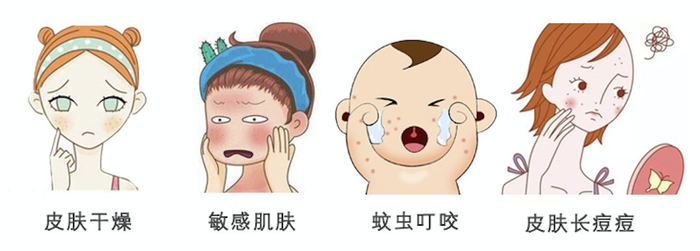 晒伤、蚊虫叮咬、疹子、痱子、痘痘闭口;