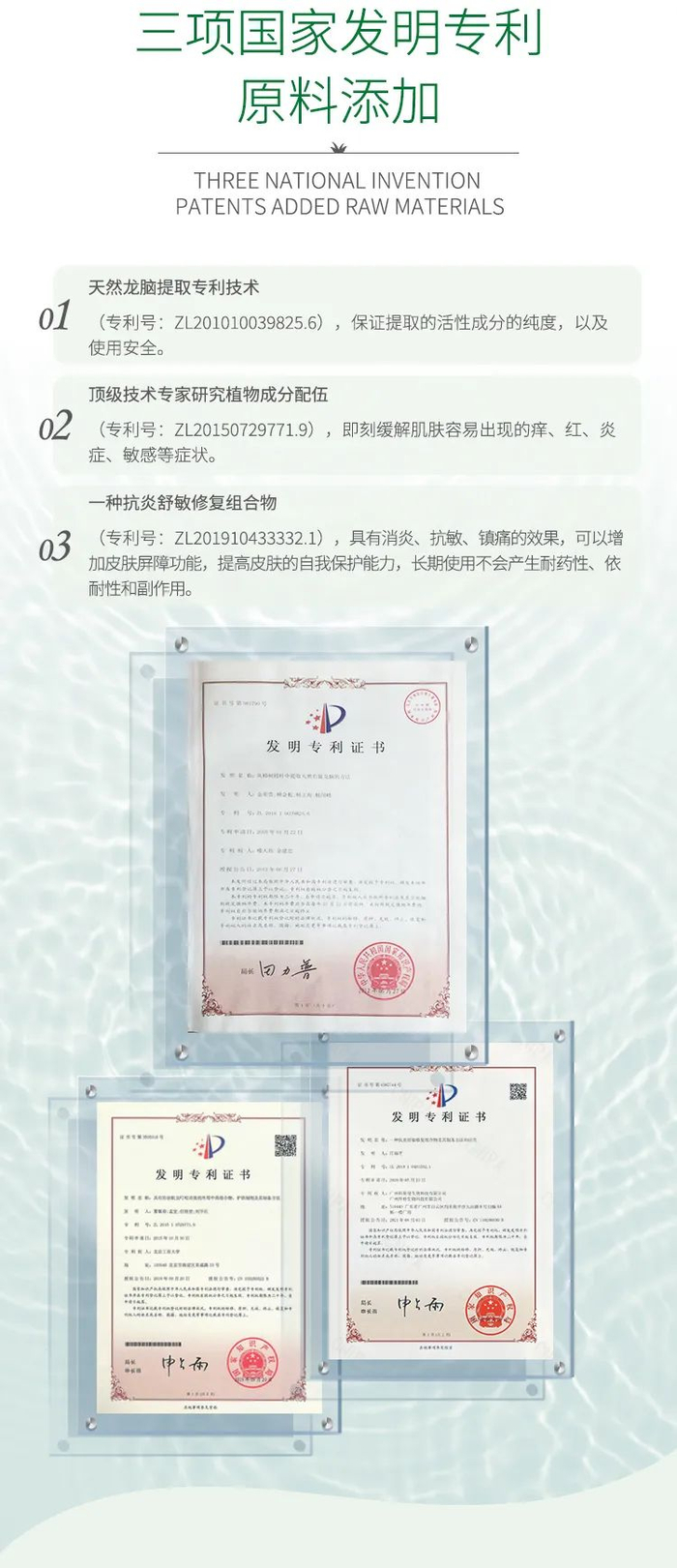 今年龙脑芦荟胶的配方又重新进行了升级,多添加了国家专利原料:一种抗炎舒敏修护组合物(ZL201910433332.1),产品力更强。