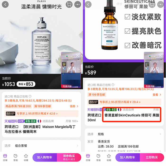 同时,海外美妆直邮的中高端美妆品牌也是TVB的主打的销售产品,比如CPB、雪花秀、娇韵诗等,在淘内一众直播间十分具有价格竞争力。相比市面上三分之二的美妆品牌都与李佳琦深度绑定,TVB通过海外直邮的性价比和品牌背书保证,形成了货品的差异化。