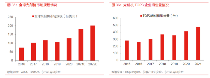 根据全球半导体设备市场规模估算,2021年全球光刻机市场规模为181亿美元,预计2022年将达到201亿美元。全球光刻机前三大厂商的市场份额占比达90%以上,根据前三大厂商的销售数据显示,2015-2021年,全球光刻机销售量总体增长,2021年达478台。