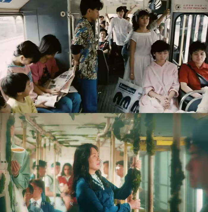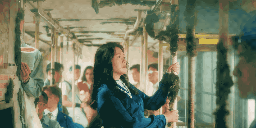 在这短暂又漫长的四分钟里,一节被藤蔓苔藓簇拥的巴士车厢,李丽珍全程双手紧抓扶手,明灭流转的光一路淌过她沉默的侧脸,宛如时光磨出细纹拭去泪痕,一站就是二十年的爱与憾。