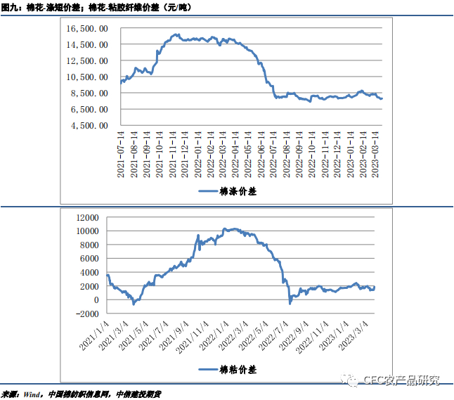 棉纺产业回顾:本周国内棉花现货价格重心略有下跌,现货交投较上周好转。棉花现货销售基差上涨乏力,周四、周五较好成交后部分棉商调涨销售基差,但低基差也较多,当前2022/23新疆机采3128/28B/杂3.5内主流销售基差在CF05+300~550新疆库。纯棉纱本周市场整体行情变化不大,表现分化。分品种来看,气流纺32支成交走淡,其余品种仍尚可。全棉坯布交投气氛与上周相当,局部较上周好转。目前织厂走货仍持续,目前仍以内销订单走货为主。外销方面依旧清淡。