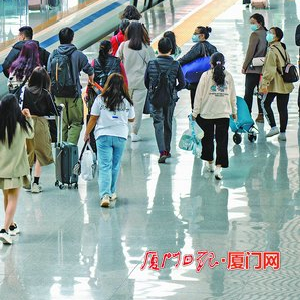 昨日上午10时,在厦门站3号站台,排队候车前往香港方向的旅客逐渐增多,旅客洪女士说,直达列车恢复后无需中转,可节约近1个小时的通行时间。