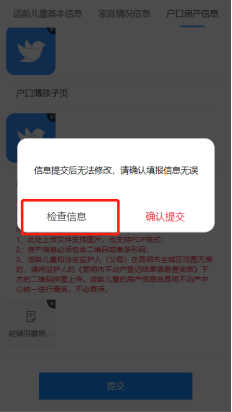 户口与房产信息一共需要上传三张照片,分别是户口簿首页照片,户口簿适龄儿童页照片以及房产证明材料。