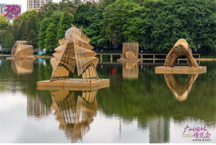 麓湖公园是第30届广州园博会展出作品最多的区域,展出“粤港澳大湾区·东盟国际高校营造大赛竹艺展”“羊城工匠杯花境技能大赛作品展”“精品园林展”“花鸟林摄影展”,共计29组作品。