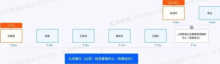 天眼查显示,九州建元第一大股东为任振泉(即任泉),持股32%,王京花持股20%。不过任泉和王京花并未被限制消费。