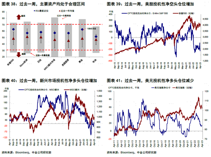 ►情绪仓位:资产均处于合理区间,美股投机性净空头增加。过去一周,去除趋势项后的美股看空/看多比例(10天平均)回落,主要资产均处于合理区间。仓位方面,美股投机性净空头仓位增加,新兴市场投机性净多头仓位增加,美元投机性净多头仓位减少,黄金投机性净多头仓位增加。
