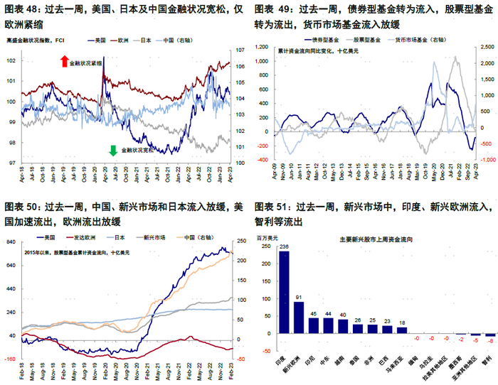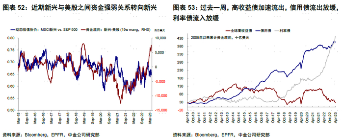 ►资金流向:股票型基金转为流出。过去一周,债券型基金转为流入,股票型基金转为流出,货币市场基金流入放缓。分市场看,中国、新兴市场和日本流入放缓,美国加速流出,欧洲流出放缓。近期新兴与美股之间资金强弱关系转向新兴。