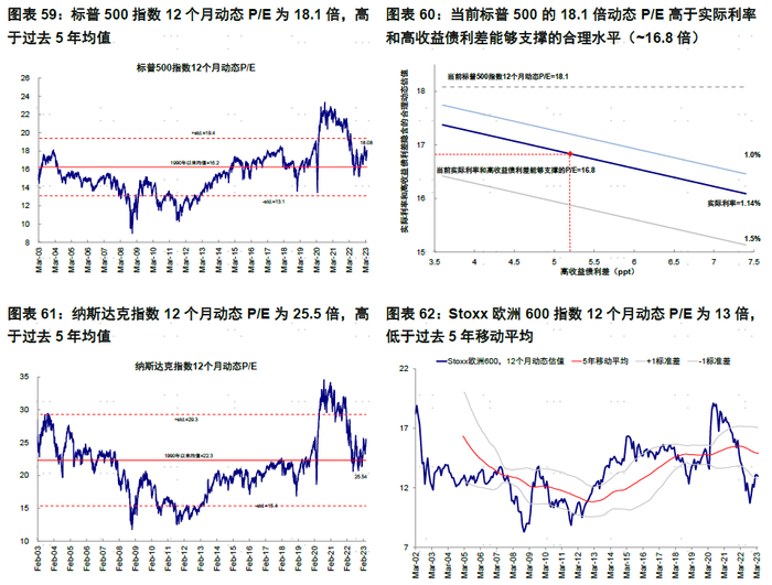►市场估值:高于增长和流动性合理水平。当前标普500的18.1倍动态P/E高于实际利率和高收益债利差能够支撑的合理水平(~16.8倍)。