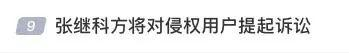 3月31日,张继科工作室转发律师声明,再次声称目前已就侵权情况开展取证工作,并将对多次发布或拒不删除侵权内容、造成较大恶劣影响的重点侵权用户提起诉讼,以维护张继科的合法权益。