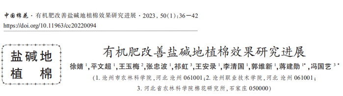 中国棉花 | 有机肥改善盐碱地植棉效果研究进展