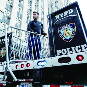 4月1日,美国纽约警察局工作人员在曼哈顿地区检察官办公室外设置路障。图源:视觉中国