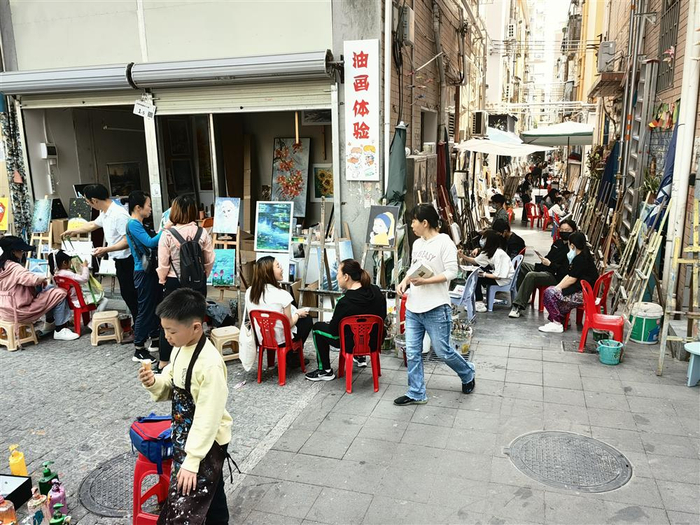 这里经常出现毫无技术含量的“低价竞争”。周峰表示,大芬村最早的油画体验活动是300元一节课,后来价格越降越低,现在已经变成50元一节,“都没有底线了,这还谈什么品质,谈什么利润?”
