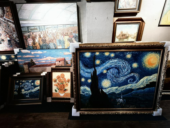 在两人各自的工作室,梵高的《星空》《向日葵》的复制品就放在进门处的地板上,十分显眼。“光做原创是活不下去的。”赵小勇无奈笑道,纪录片播出后,的确有许多客户慕名而来,但却表示想购买的是他画的梵高,“还有个客户给我说,你能不能用毕加索的风格画一个毕加索的画给我。”
