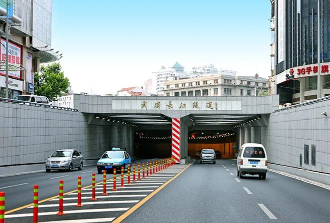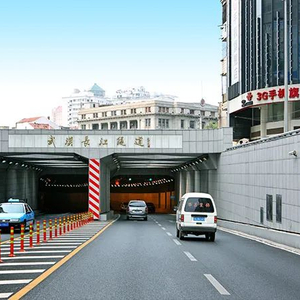 万里长江第一隧——武汉长江隧道位于武汉长江大桥、二桥之间,北接汉口大智路,南通武昌友谊大道,隧道全长约 3.7 km,双向 4 车道,车道净高 4.5 m,设计车速 50 km/h,2008 年 12 月 28 日武汉长江隧道通车试运行。