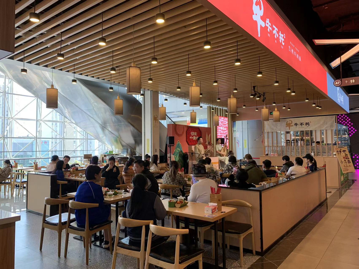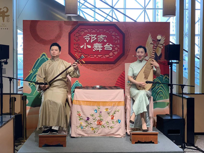 “这就是我们配合商场打造‘邻家小舞台’的初衷。”牛不托面馆负责人说,店铺今年3月进入商场前,便与商场达成协议,共同推出“邻家小舞台”项目。为此,他们专门找到了合作伙伴,配合演出内容提供适宜的茶点,让周边居民用“老底子”的方式欣赏传统演出,做好文化传承。