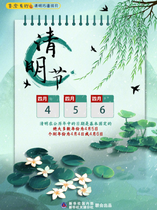 “清明在公历年中的日期是基本固定的,绝大多数年份为4月5日,个别年份为4月4日或4月6日,而闰二月的时间一般在公历3月下旬至4月中旬,所以有闰二月的年份,清明必定落在闰二月里。2004年和2023年的清明落在闰二月十五,2042年和2099年的清明落在闰二月十四。”杨婧说。