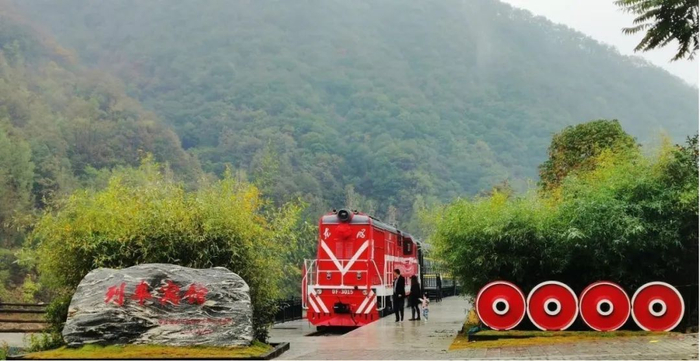 栾川县王坪村铁路元素景观小品。