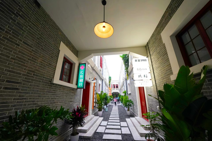 记者在现场看到,泰安里弄堂长约70米的小道把6座小楼分为两排,整体格局没变,小道上的绿植和装饰石材让这个半开放式空间充满了生机。到了傍晚,两边店铺门头亮灯,咖啡厅、剧本社、小酒馆,一个充满现代艺术气息的小街就在眼前。