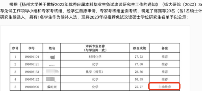 据扬州大学化学化工学院消息,该院化学1901班学生戴昀奕,近日被中国科学技术大学拟录取。
