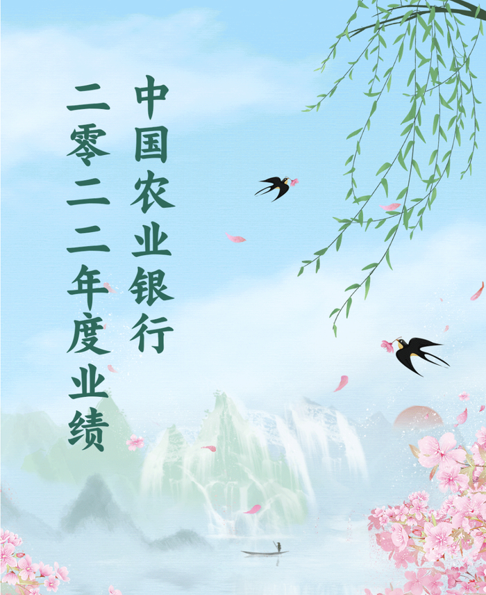 2023年3月30日,中国农业银行股份有限公司发布2022年度业绩。信贷与融资增量创历史新高。总资产达33.9万亿元。贷款总额19.8万亿元,新增2.59万亿元,增速15.1%。其中,公司类贷款余额10.7万亿元,新增1.57万亿元。债券投资余额9.32万亿元,新增1.3万亿元。全口径客户存款余额达28.2万亿元,新增4.2万亿元,增速17.7%。其中,对公客户存款余额9.0万亿元,新增1.03万亿元,个人客户存款余额15.0万亿元,新增超过2万亿元,增量均创历史新高。