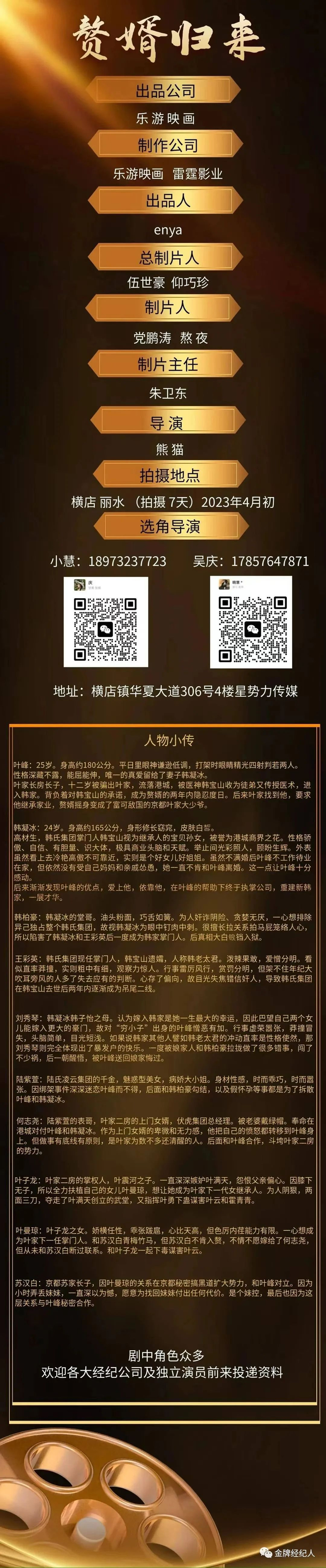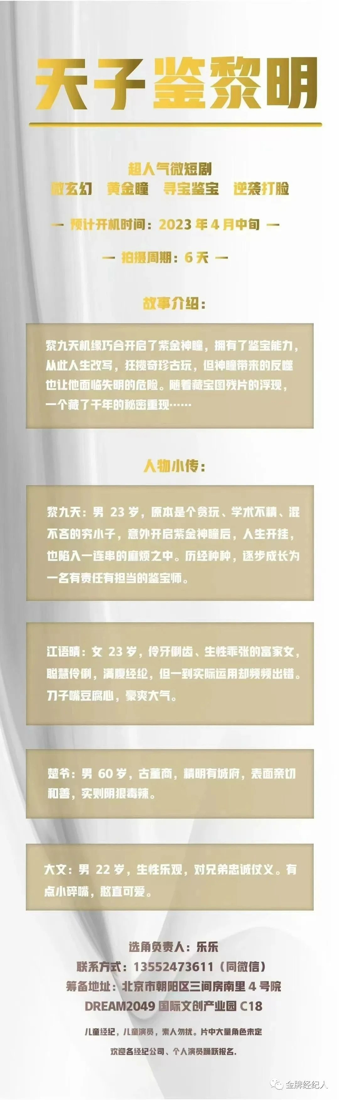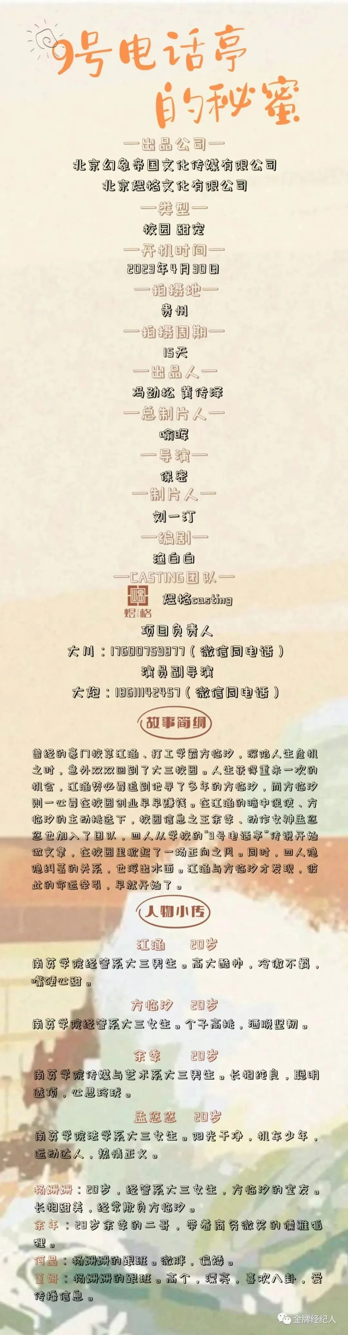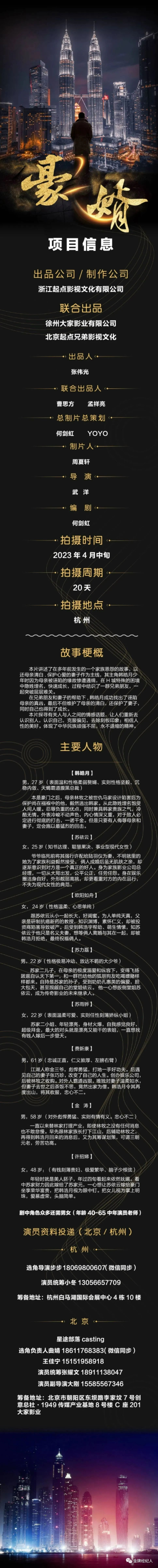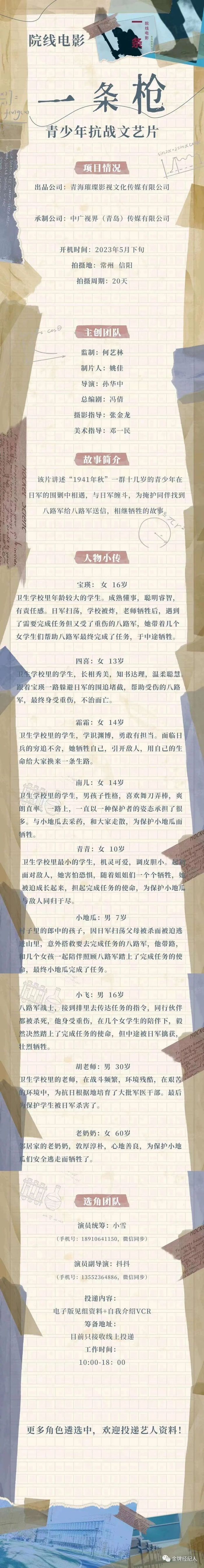 本栏目组讯由小编采集并供业内参考交流使用,信息内容如有变化请根据实际情况核实。各大剧组如有组讯发布,可以联系金牌经纪人,协助扩散!