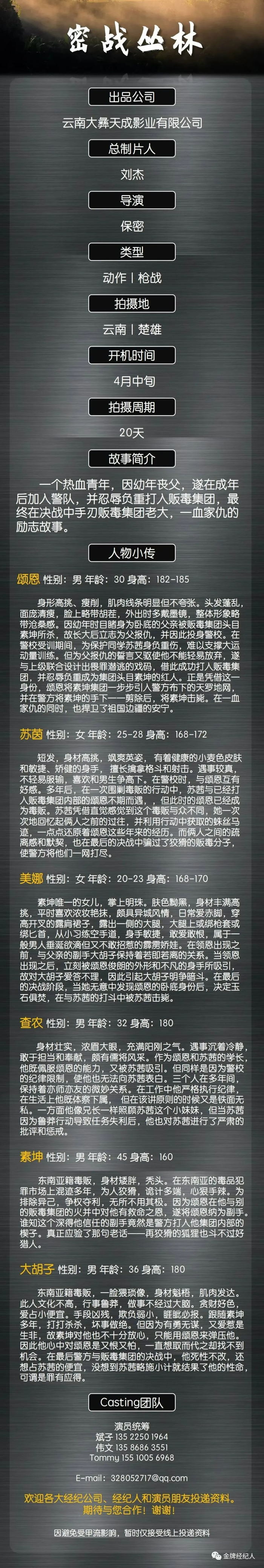 选角导演:陈言15652091520