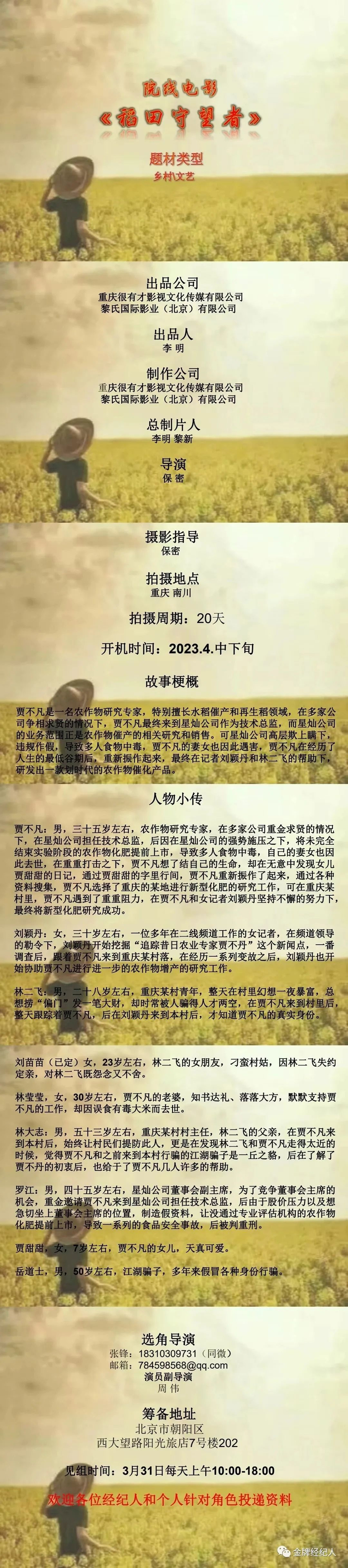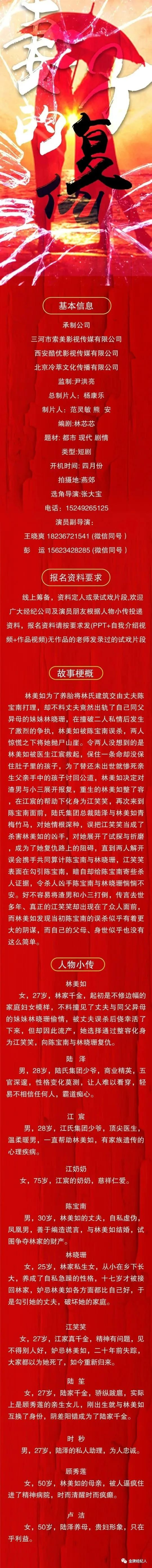 选角导演:小慧18973237723