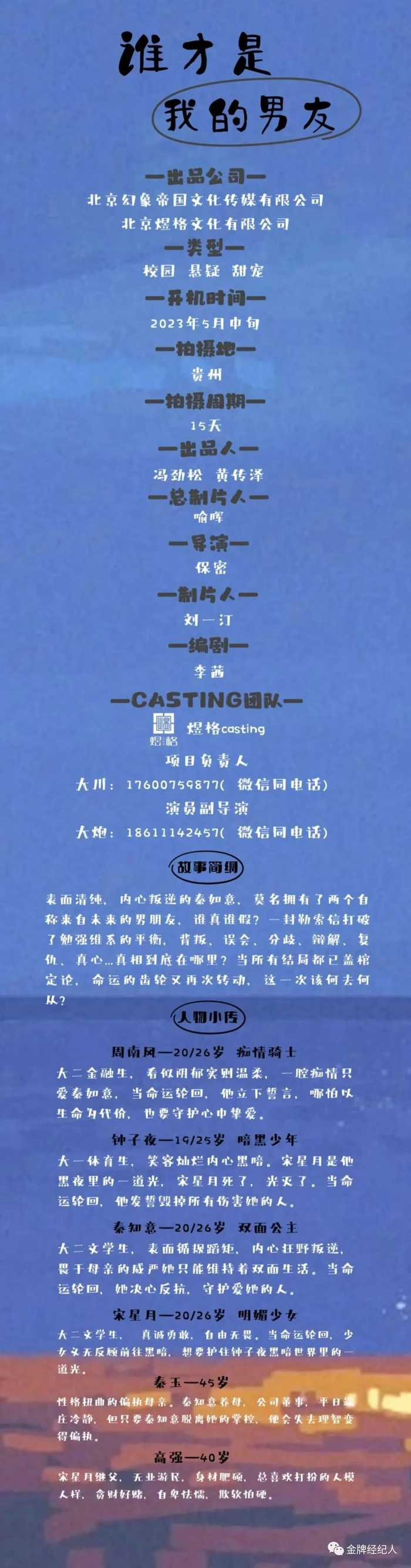 选角负责人:王佳宁15151958918