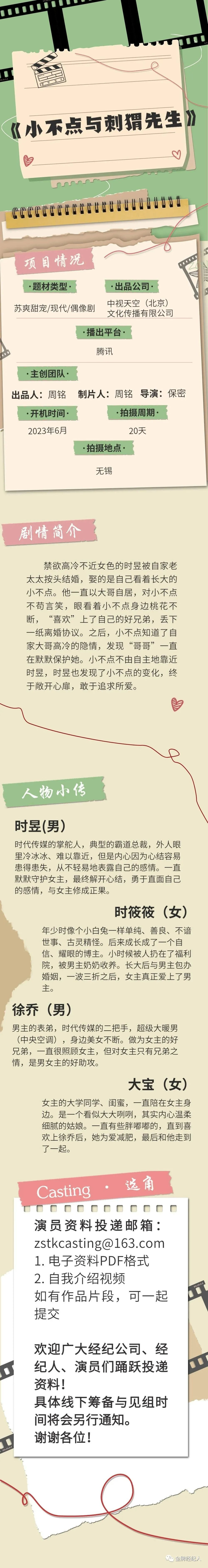 演员资料投递邮箱:zstkcasting@163.com