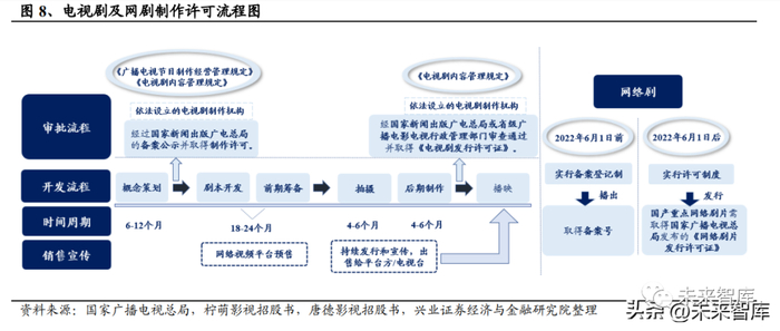 拍摄制作周期较长,疫情影响积压严重。电视剧从制作到播出通常需要经历“概 念策划-剧本开发-前期筹备-拍摄-后期制作-播映”的过程,其中在制作之前需要经 历拍摄备案、播映之前需要获得发行许可,拍摄周期通常为 4-6 月。疫情期间, 受封控等因素影响,影视剧组被迫推迟开工或项目停摆,大量已经拿到拍摄许可 备案但无法开机的项目积压,抑制了剧集公司的产能。