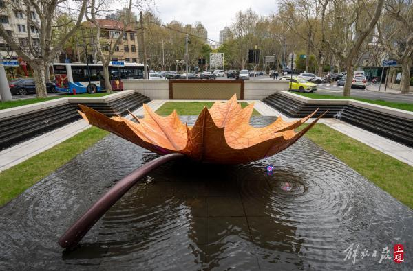 门口一片金黄色梧桐叶雕塑,与对面徐家汇公园门口的银色梧桐树雕塑遥相呼应,彰显出酒店地处衡复风貌区的特色。