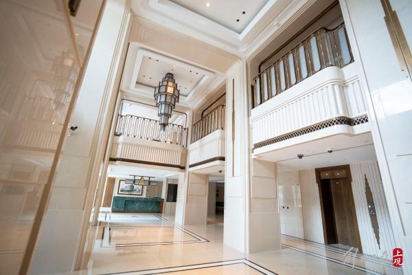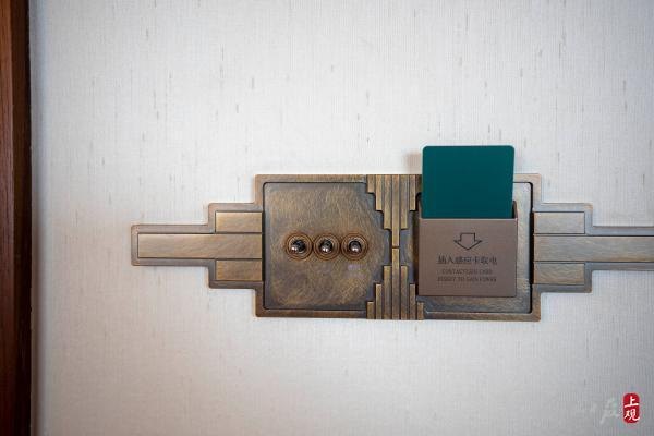此次大修中,Art Deco元素也被密集呈现。从酒店大堂吊灯到电梯按钮背景板,从客房走廊地砖到房内衣柜装饰条,几乎随处可见摩天大楼轮廓线标志。