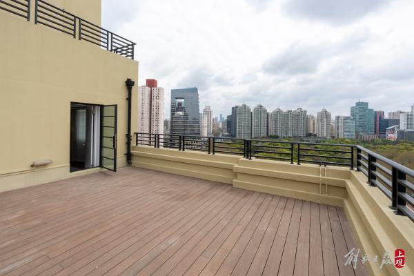 在大楼16层,一座正对徐家汇公园的露台展露真容。据介绍,过去近90年间经过数次改造,这处露台上曾建起了酒店客房。而在毕卡第公寓落成之初,顶楼是公寓投资方万国储蓄会老板施培仁的住所,大露台上正是施培仁举办露天派对的地方。此次改造将露台复原,最大程度还原了原建筑的结构。